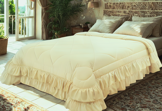 Trapunta Cassandra in velluto di cotone doppia rouche
