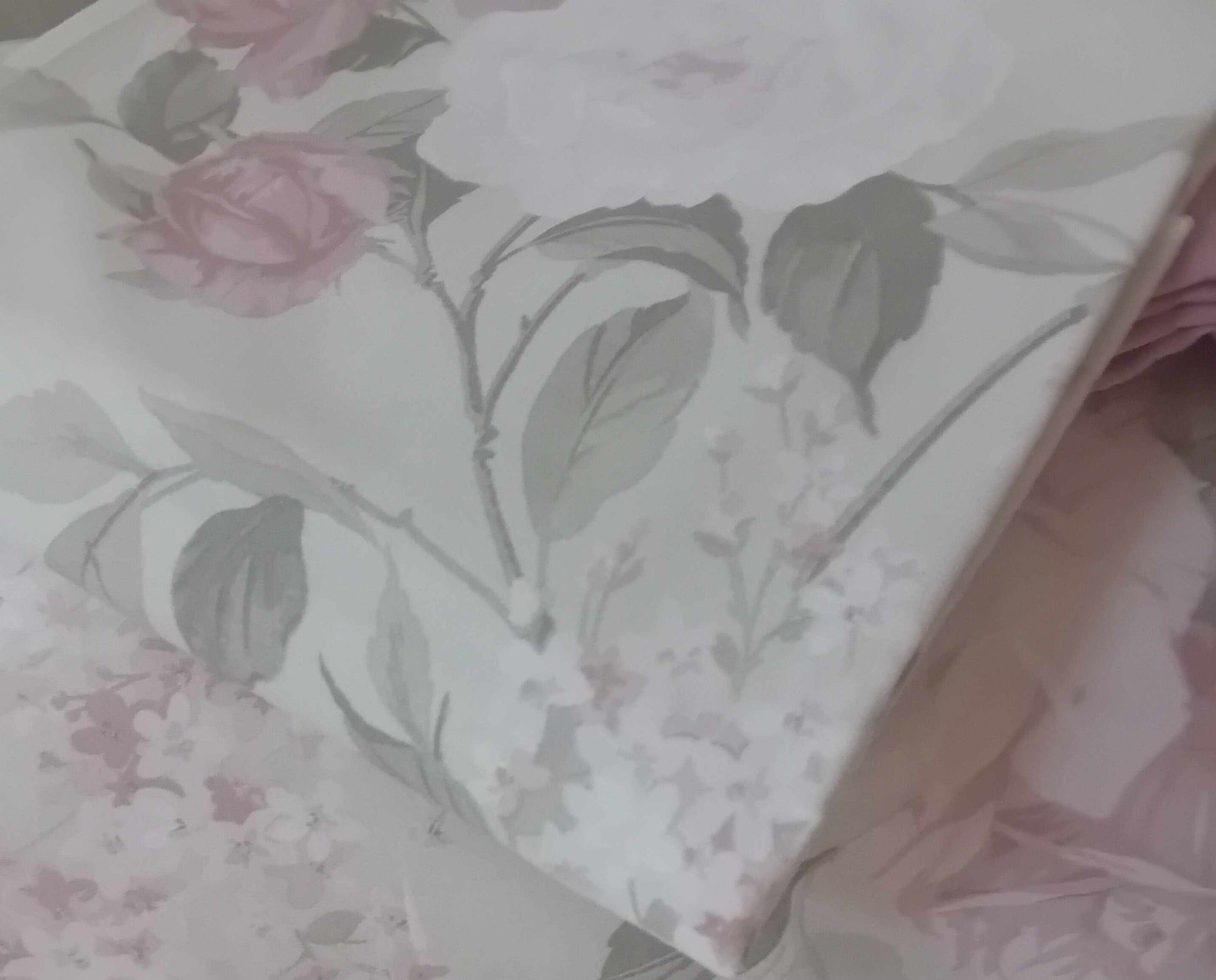 Completo letto Liberty in puro cotone con disegno a rose Rosa Cipria